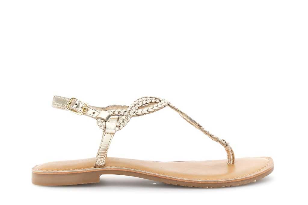 sandali infradito flat in pelle con ricamo a treccia oro