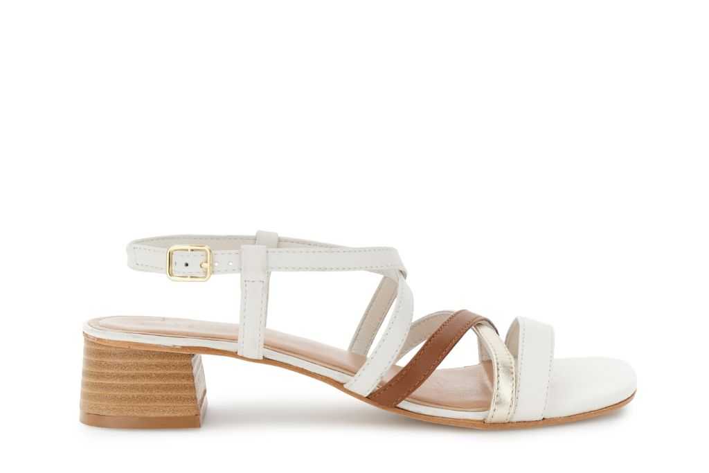 Sandali in pelle con tacco largo alto 4 cm e design a listini intrecciati multicolor impreziositi da dettagli metallici. calzatura dalla linea femminile ma decisa cinturino regolabile e calzata stabile perfetta per dare carattere ai look di tutti i giorni.