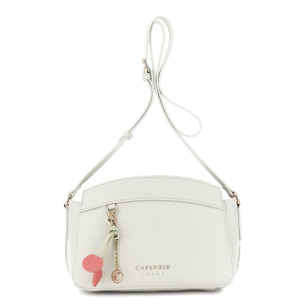 borsa a tracolla effetto saffiano con charm avorio