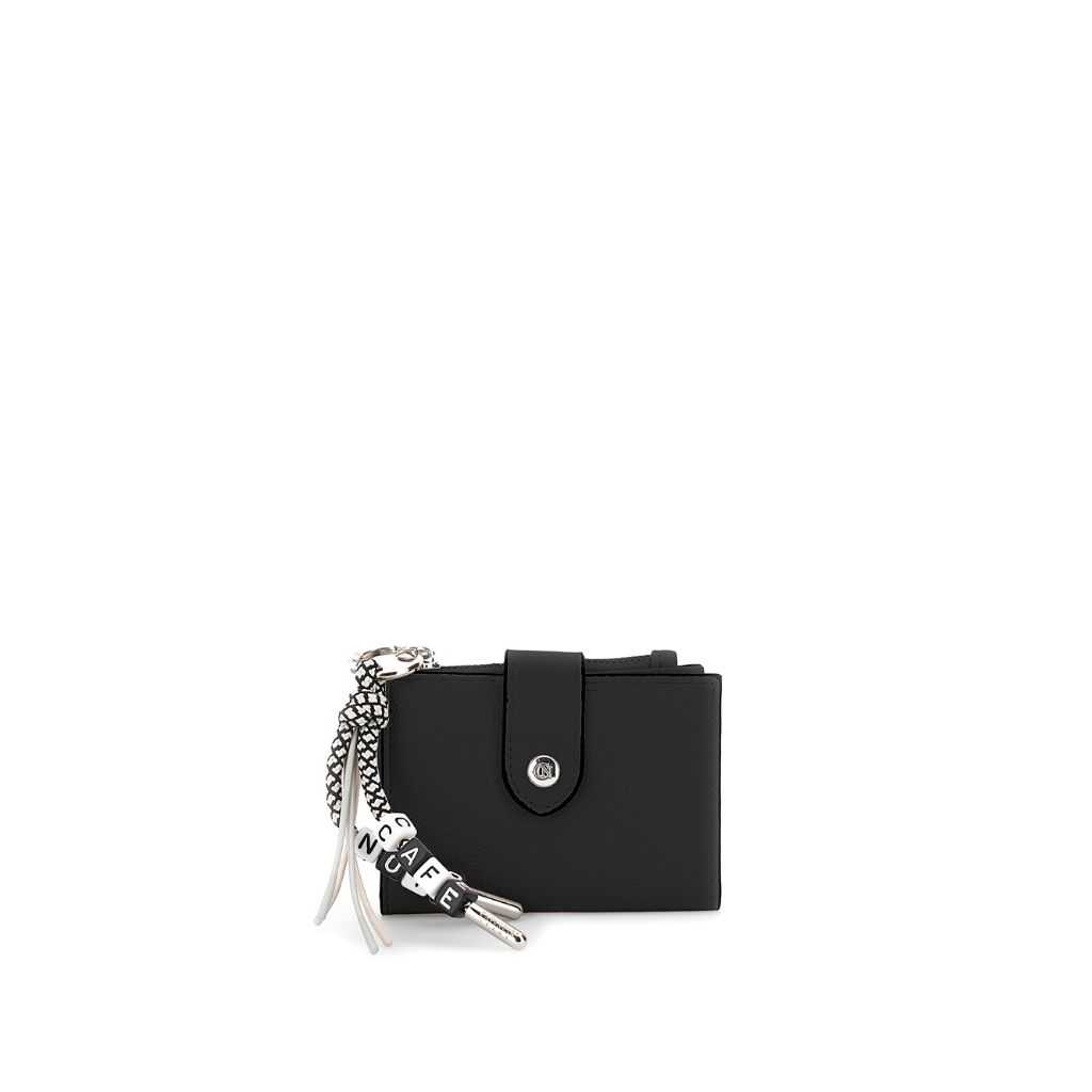 Portafoglio piccolo con costole nere e zip effetto pelle e tiralampo charm