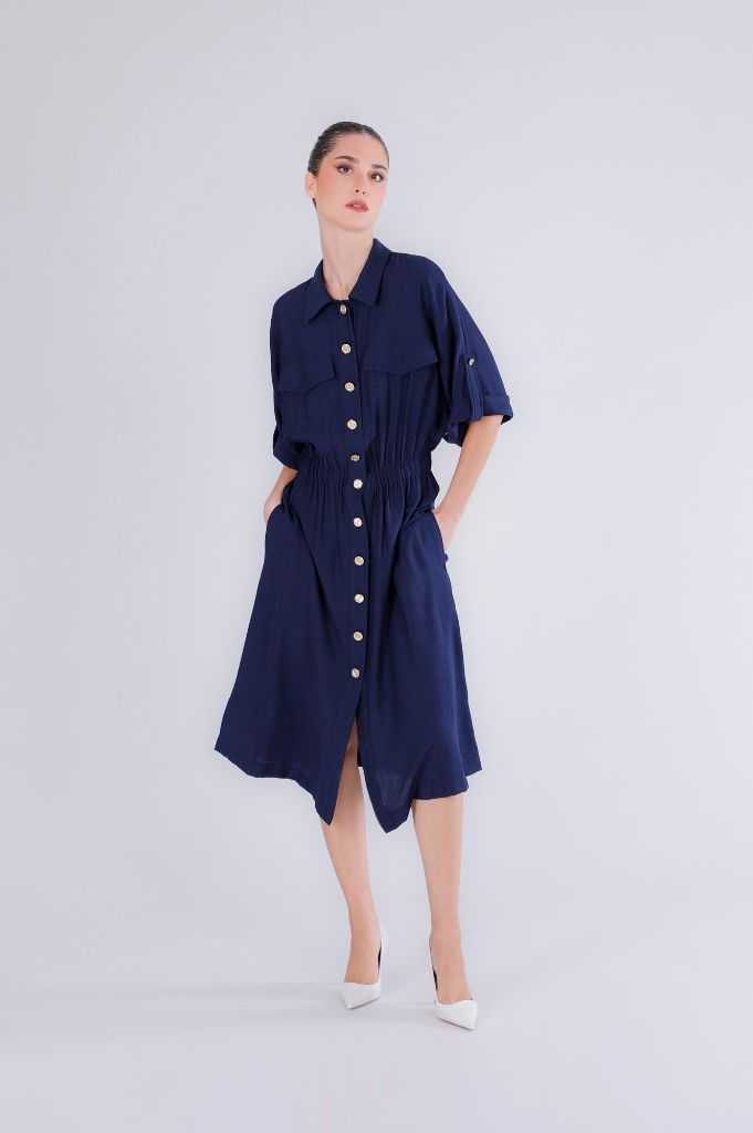 abito con elastico in vita e abbottonatura davanti navy