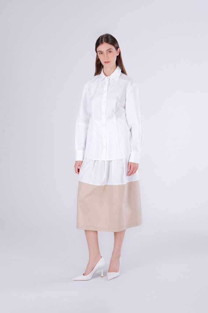 Camicia avvitata da donna in popeline di cotone dal design pulito ed elegante. vestibilità femminile che valorizza la silhouette colletto classico e maniche lunghe. ideale per look formali o quotidiani. la modella è alta 171 cm e indossa la taglia s. vestibilità: regular.