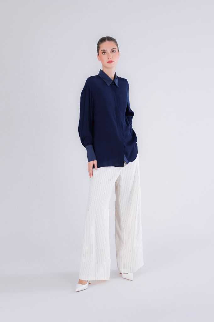 camicia con rifiniture in raso navy