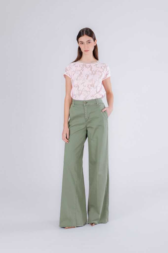 jeans wide leg in bull denim militare