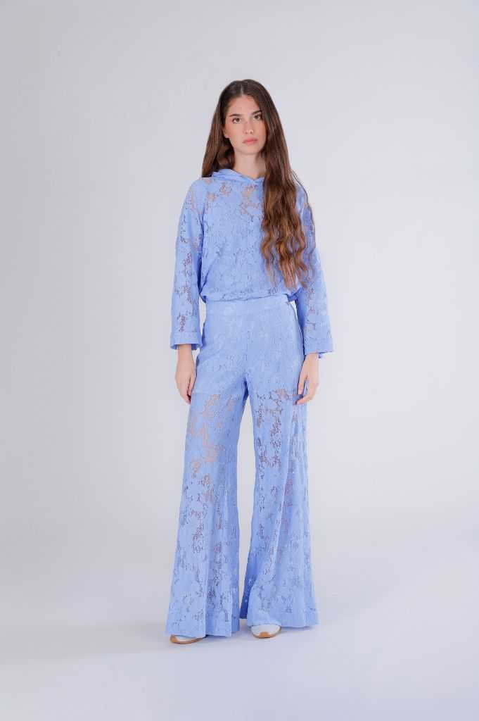 pantaloni palazzo in pizzo celeste