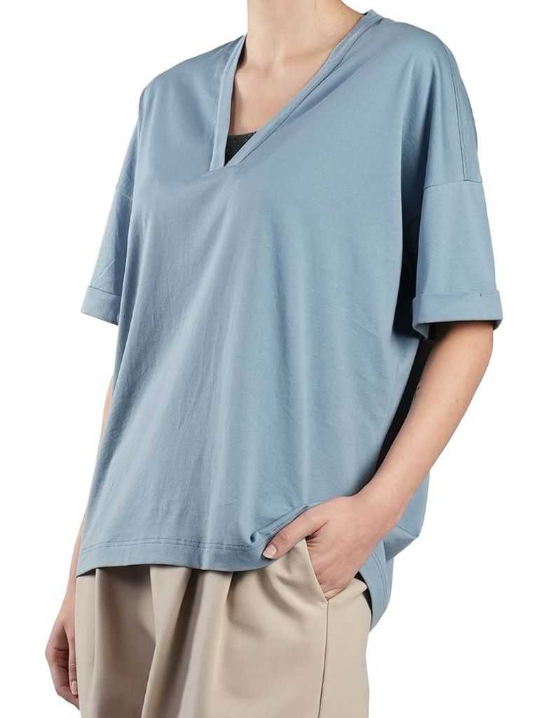 BRUNELLO CUCINELLI - Brunello Cucinelli Light Blue Cotton T-Shirt