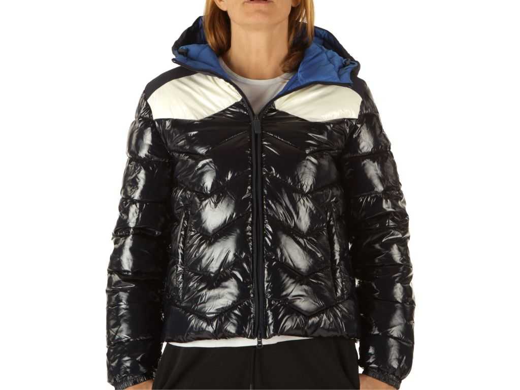 Cappuccio imbottito. 2 tasche con zip. All’interno sono state inserite delle bretelle personalizzate che permettono di indossare il capo come se fosse uno zaino. Tessuto effetto vernice lucida. Imbottitura interna sintetica. Polsini elasticizzati. Logo sulla manica sinistra. ATTENZIONE: La modella è alta 1.73 e indossa una taglia M. Composizione :100% poliestere.