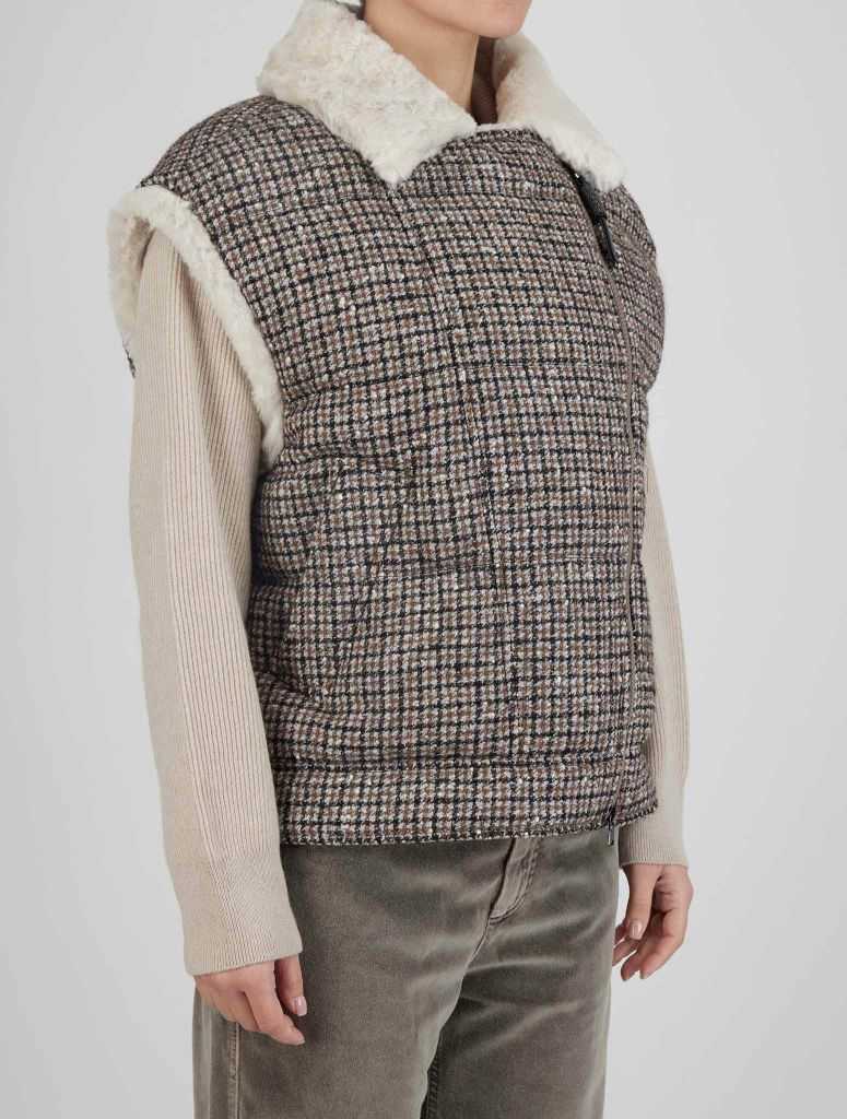 BRUNELLO CUCINELLI - Brunello Cucinelli Multicolor Wool Alpaca Pl Coat Gilet Woman