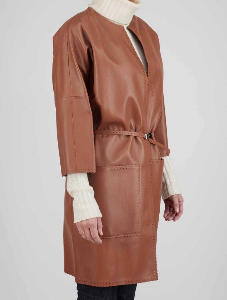 Kiton Brown Leather Coat