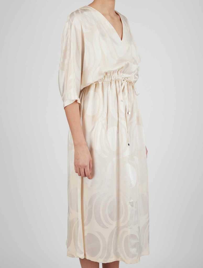Kiton Beige White Silk Dress