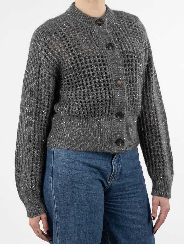 Brunello Cucinelli Gray Wool Cashmere Mohair Pa PL Cardigan