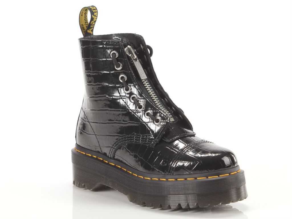 Chiusura con zip. Occhielli in metallo. Zip removibile lasciando l'allacciatura classica. Cuciture tono su tono. Impunture a contrasto. Occhiello sul tallone per facilitare la calzata. Tomaia in vernice. Zeppa 3,5 cm circa. Effetto pelle di coccodrillo. Tra le nostre superstar a grande richiesta, Sinclair è stato rielaborato in pelle in vernice Croc. Fornito di una zip rimovibile, cuciture gialle a filetto e tanto carattere Docs, poggia su una suola platform ed è pensato per catturare l'attenzione ad ogni passo. Patent Lamper Croc Emboss è una pelle rivestita dall'alto tasso di lucentezza e un motivo coccodrillo a rilievo Le nostre linee con guardolo Goodyear sono sigillate a caldo a 700°C e rinforzate con le nostre caratteristiche cuciture.