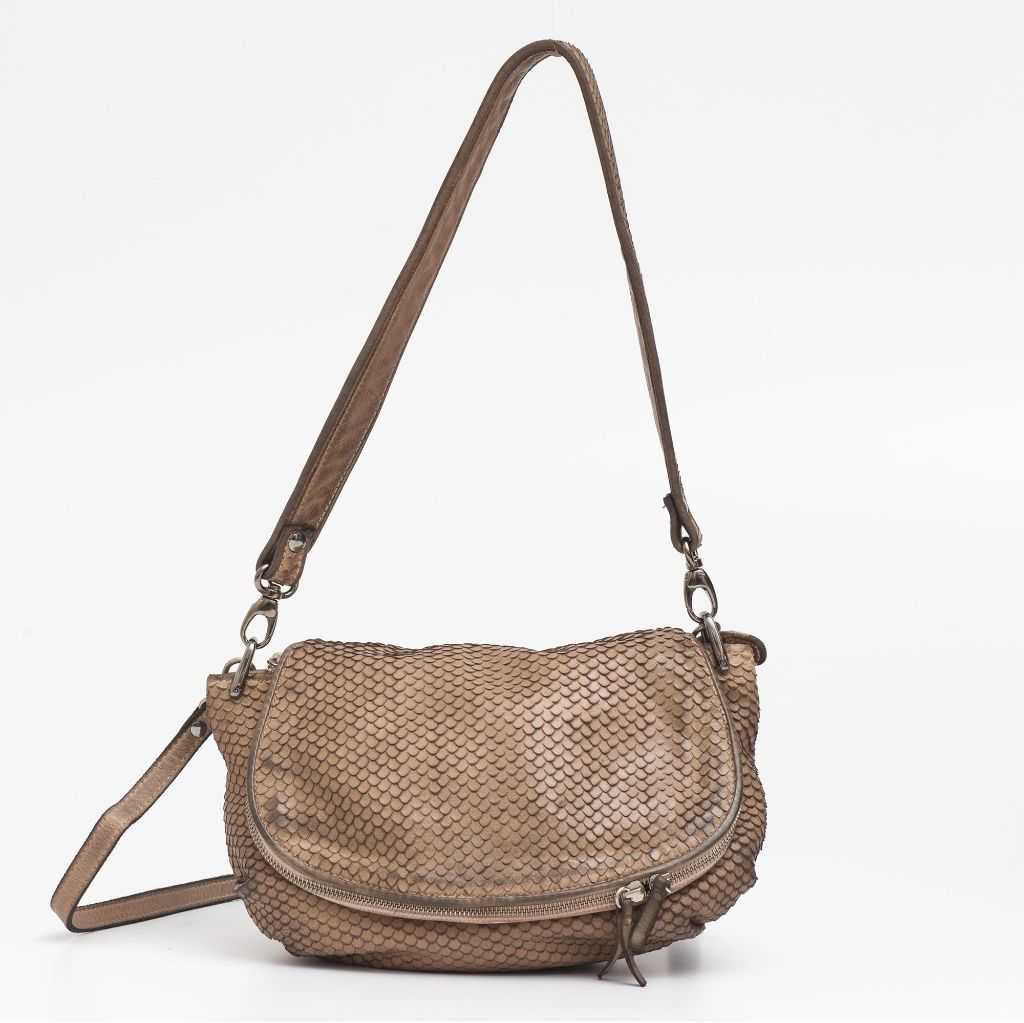 Borsa Reptile's House fatta a mano in Italia (Milano) Altezza: 22cm Larghezza:30cm Profondita: 13cm tracolla rimovibile e regolabile in pelle tracolla rimovibile a spalla con cucitura a mano a tema una tasca interna con zip una tasca applicata internamente tasca esterna con zip accessori in metallo finitura canna di fucile composizione: 100% calf skin