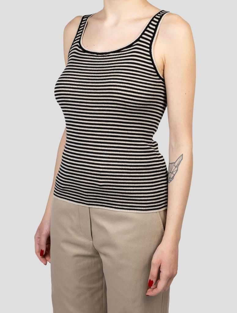 BRUNELLO CUCINELLI - Brunello Cucinelli Cashmere Silk Tank Top Black White Striped