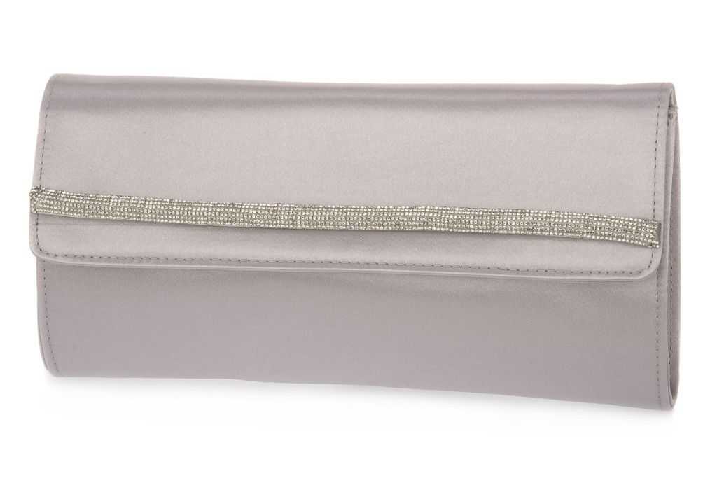 Description: pochette da donna realizzata in tessuto con strass, chiusura con bottone magnetico. tracolla removibile. dimensioni 13 x 26 x 4, 5 cm. colore: argento.Nessuna informazione disponibile