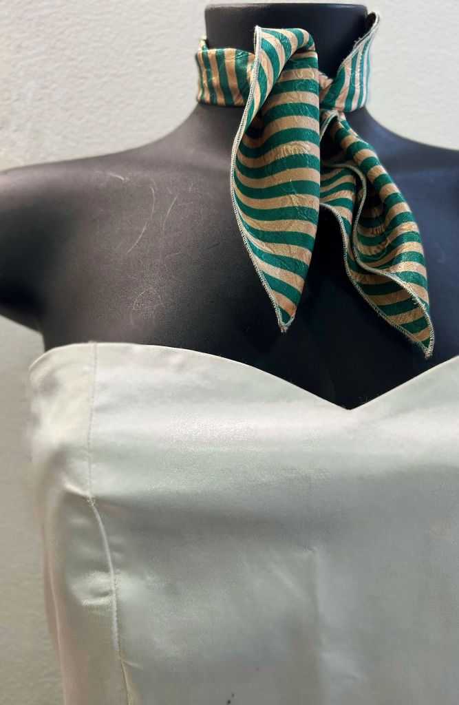 Foulard piccolo misura 45 x 45 cm. 100% seta, motivo a righe verdi e avion