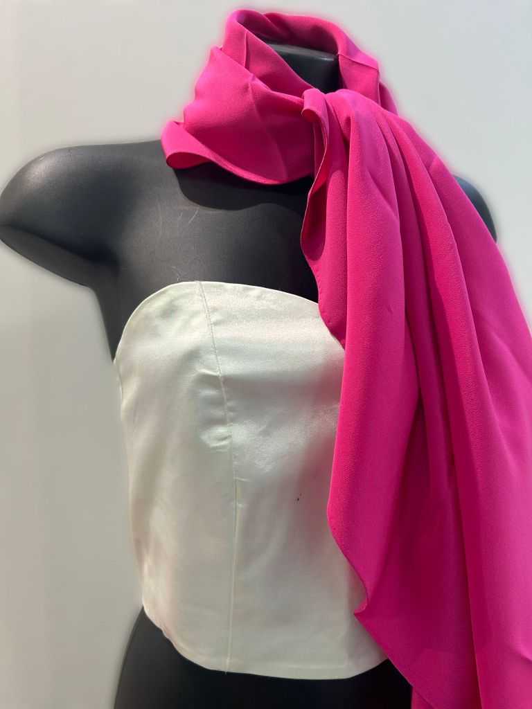 Un foulard di seta da donna di colore fucsia è un accessorio elegante e raffinato, realizzato in tessuto di seta liscia e lucente. Il colore fucsia è vivace e brillante, conferendo un tocco di vivacità a qualsiasi outfit. La seta dona una sensazione di morbidezza al tatto, scivolando delicatamente sulla pelle. Questo foulard può essere indossato in diversi modi: intorno al collo per un look classico o drappeggiato sulle spalle per un effetto sofisticato. Il fucsia lo rende un pezzo versatile, ideale sia per occasioni formali che per dare un tocco di colore a un look quotidiano.