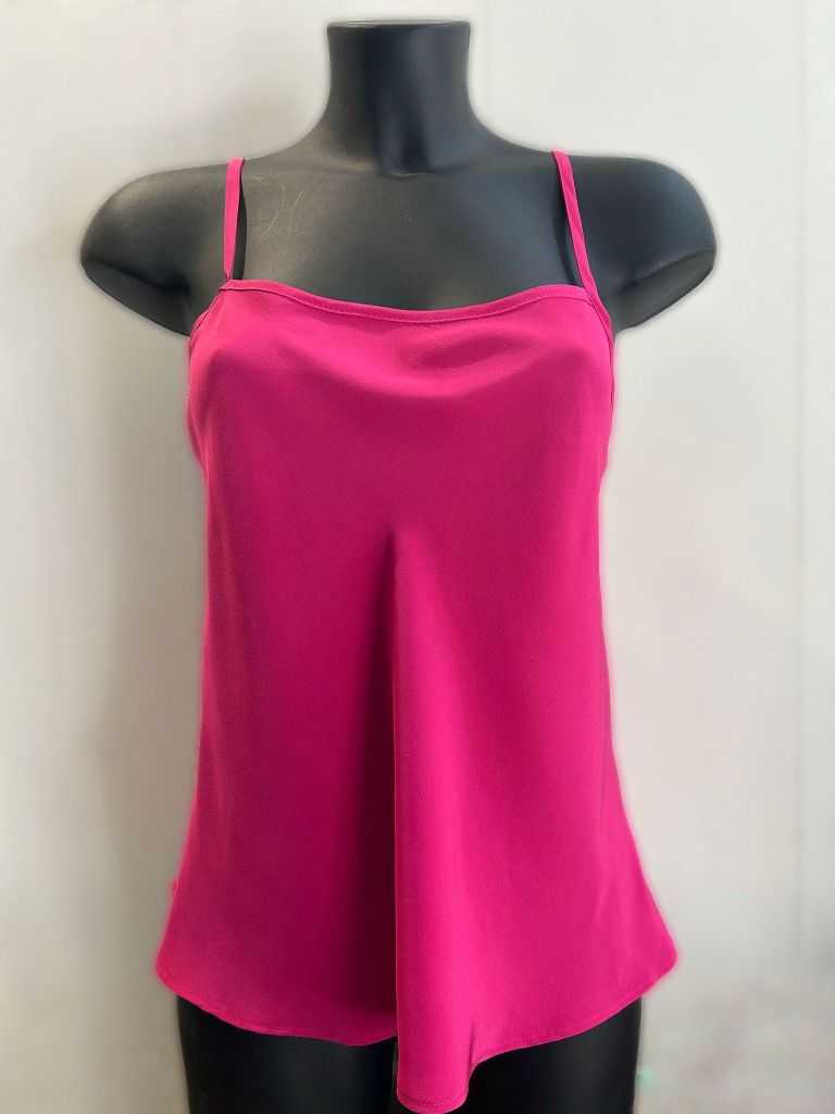 Top da donna in pura seta, colore fuxia brillante, ideale per un'eleganza audace e sofisticata. Il tessuto leggero e lucente scivola delicatamente sulla pelle, regalando comfort e raffinatezza. Il design essenziale con taglio fluido valorizza ogni silhouette, rendendolo perfetto sia per occasioni formali che per look più casual. Facile da abbinare a gonne o pantaloni, questo top aggiunge un tocco di colore e classe a qualsiasi outfit. Le finiture sartoriali e lo scollo sobrio completano il capo con uno stile impeccabile. Versatile e ricercato, è un must-have per la donna che ama distinguersi.