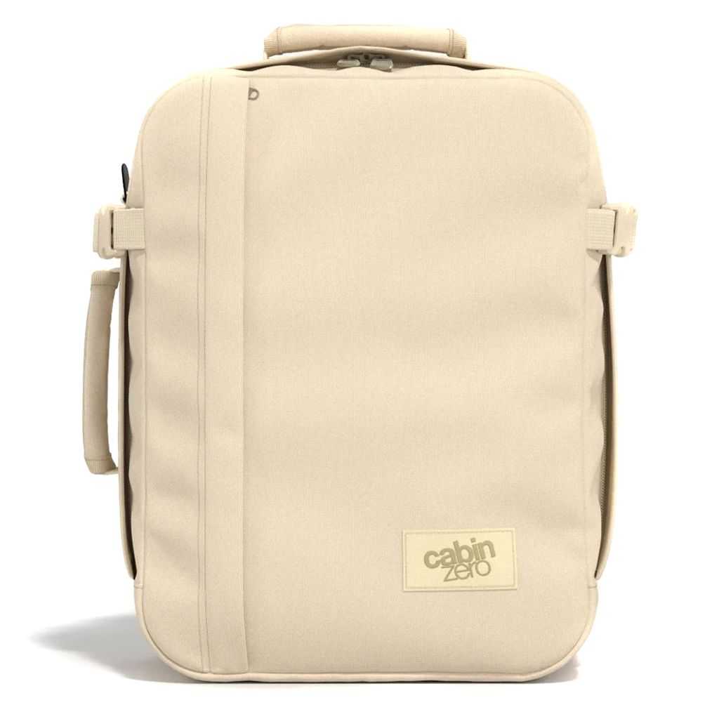 Zaino Classic Tech 28 L realizzato in tessuto poliestere incredibilmente leggero che si adatta perfettamente sotto qualsiasi sedile dell'aereo. Zaino da viaggio bagaglio a mano CabinZero con scomparto imbottito per laptop da 15.6". Ampia tasca interna con cerniera. Ampia tasca interna in rete con cerniera. Zaino misura cabina con caricamento frontale e apertura a conchiglia per un imballaggio efficiente. Capacità 28L. Dimensioni: 39 x 29,5 x 20 cm. Colore: Bianco Conchiglia (Shell).