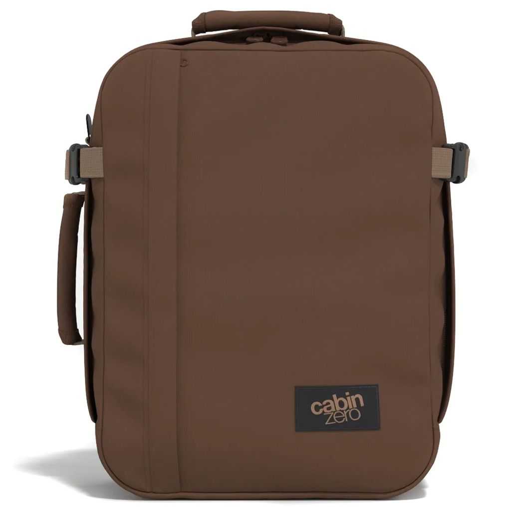 Zaino Classic Tech 28 L realizzato in tessuto poliestere incredibilmente leggero che si adatta perfettamente sotto qualsiasi sedile dell'aereo. Zaino da viaggio bagaglio a mano CabinZero con scomparto imbottito per laptop da 15.6". Ampia tasca interna con cerniera. Ampia tasca interna in rete con cerniera. Zaino misura cabina con caricamento frontale e apertura a conchiglia per un imballaggio efficiente. Capacità 28L. Dimensioni: 39 x 29,5 x 20 cm. Colore: Marrone (Redwood).