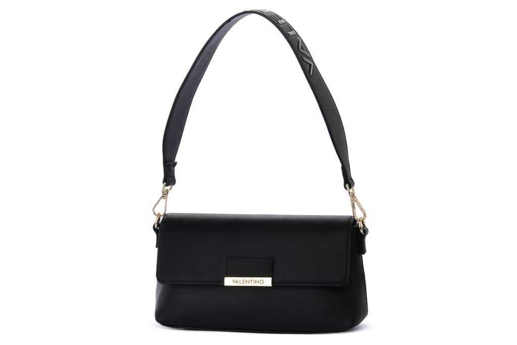 Borsa a spalla con pattina Dione realizzata in robusto poliuretano con chiusura a calamita. Tracolla removibile con Logo Valentino. Tracolla regoalbile e removibile. Dimensioni: 14 x 25 x 9 cm. Colore: Nero.
