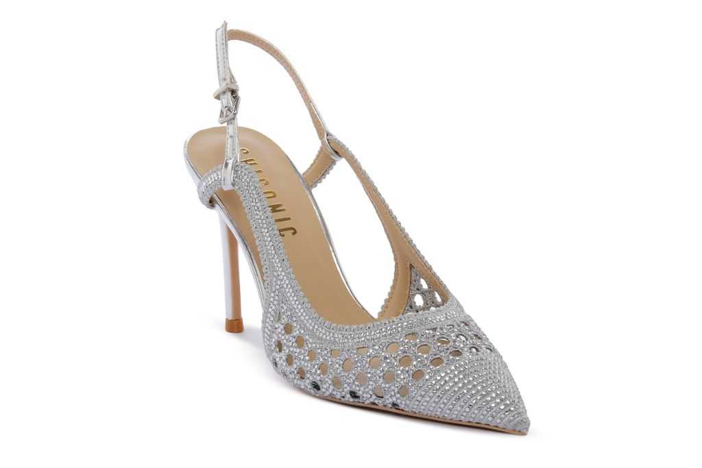 Decolletè slingback Chiconic in tessuto traforato da indossare per dare sempre un tocco di stile ed eleganza al proprio outfit. La collezione Chiconic by Uma Parker è la nuova linea di decolletè dal design chic ed iconico. Tacco alto 9 cm. Colore: Argento.
