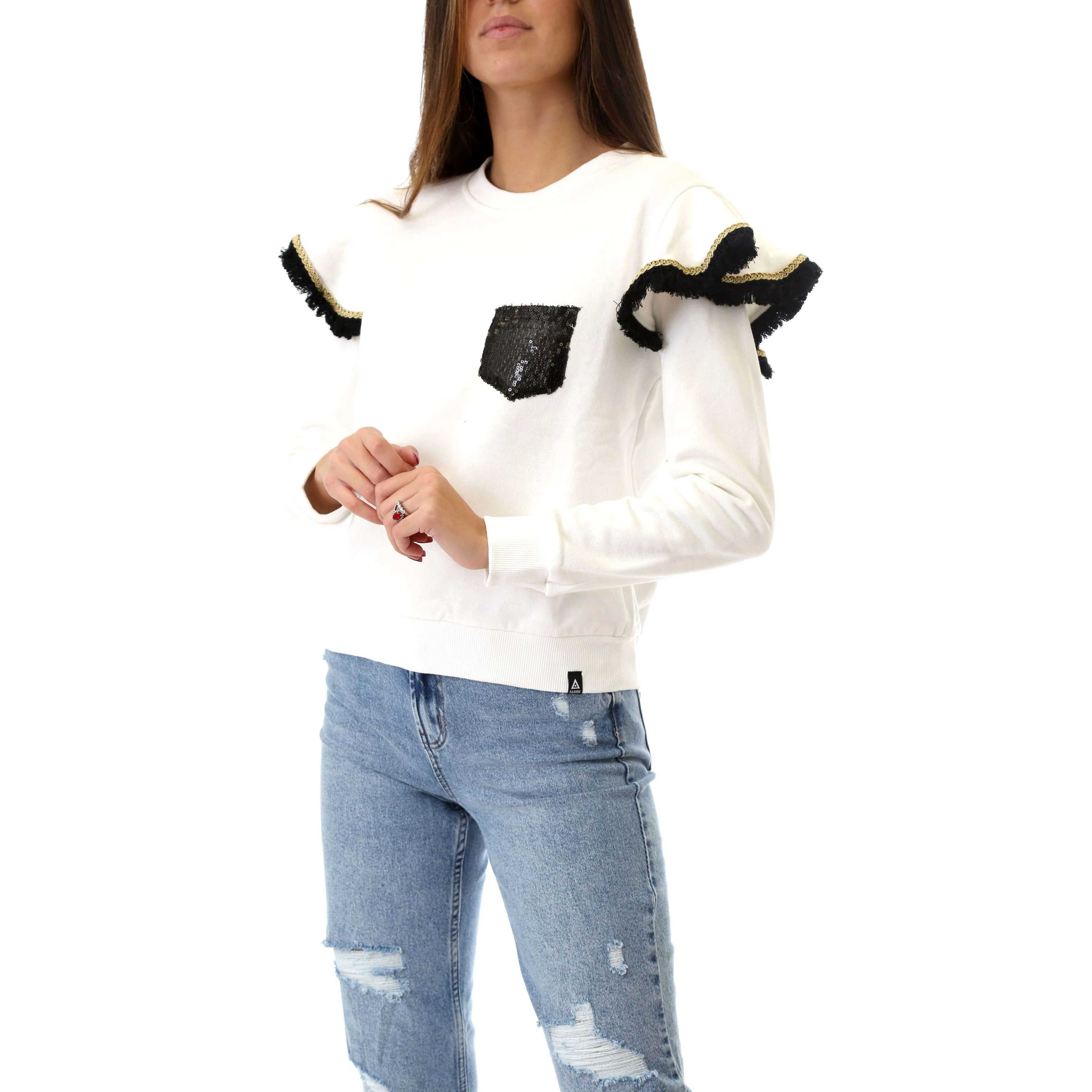 Fabrik London Donna Felpa Sweatshirt Girocollo Con Rouches Gloria White Fabrik London Collezione Autunno/Inverno 2019 Felpa con rouches sulle spalle e taschino, 100% Cotone. 100% Made in Italy. Regular fit.