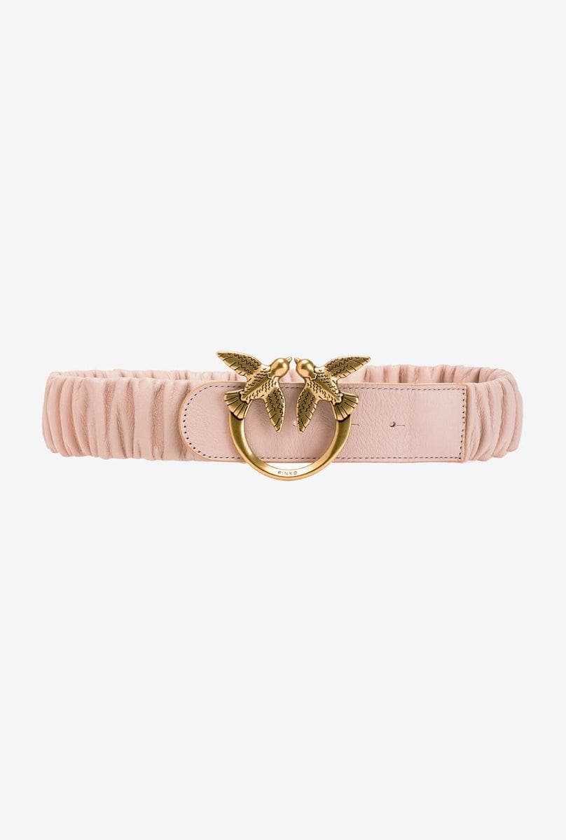 LOVE RUFFLE BELT H4 Cintura in nappa dal particolare effetto arricciato con fibbia Love Birds Diamond Cut in metallo. Fodera: CAPRA 100% - Fibbia: Zama 100% - Pelle: CAPRA 100% Altezza 4 cm