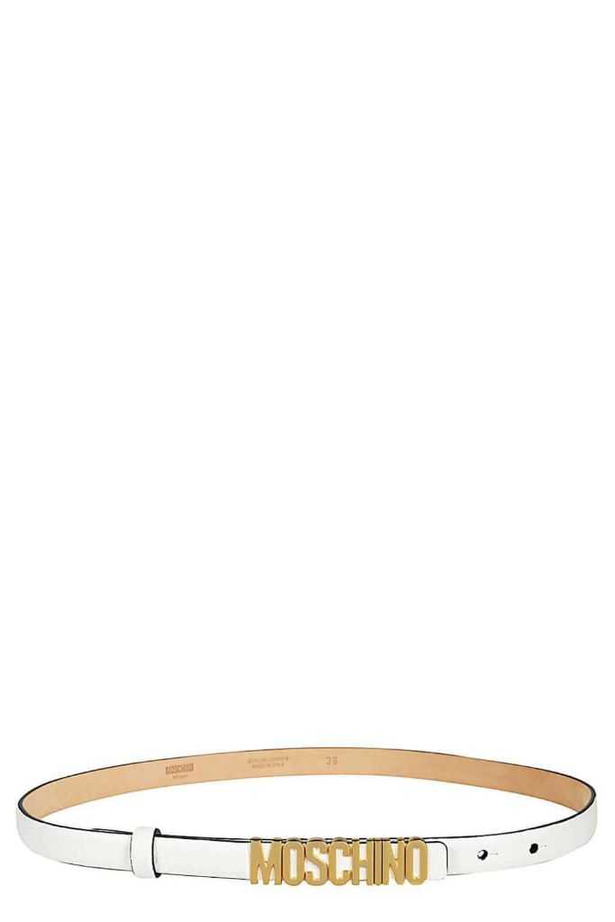 Cintura MOSCHINO in pelle di vitello colore bianco effetto martellato con logo lettering in metallo colore oro sul davanti Altezza cintura 2.5cm