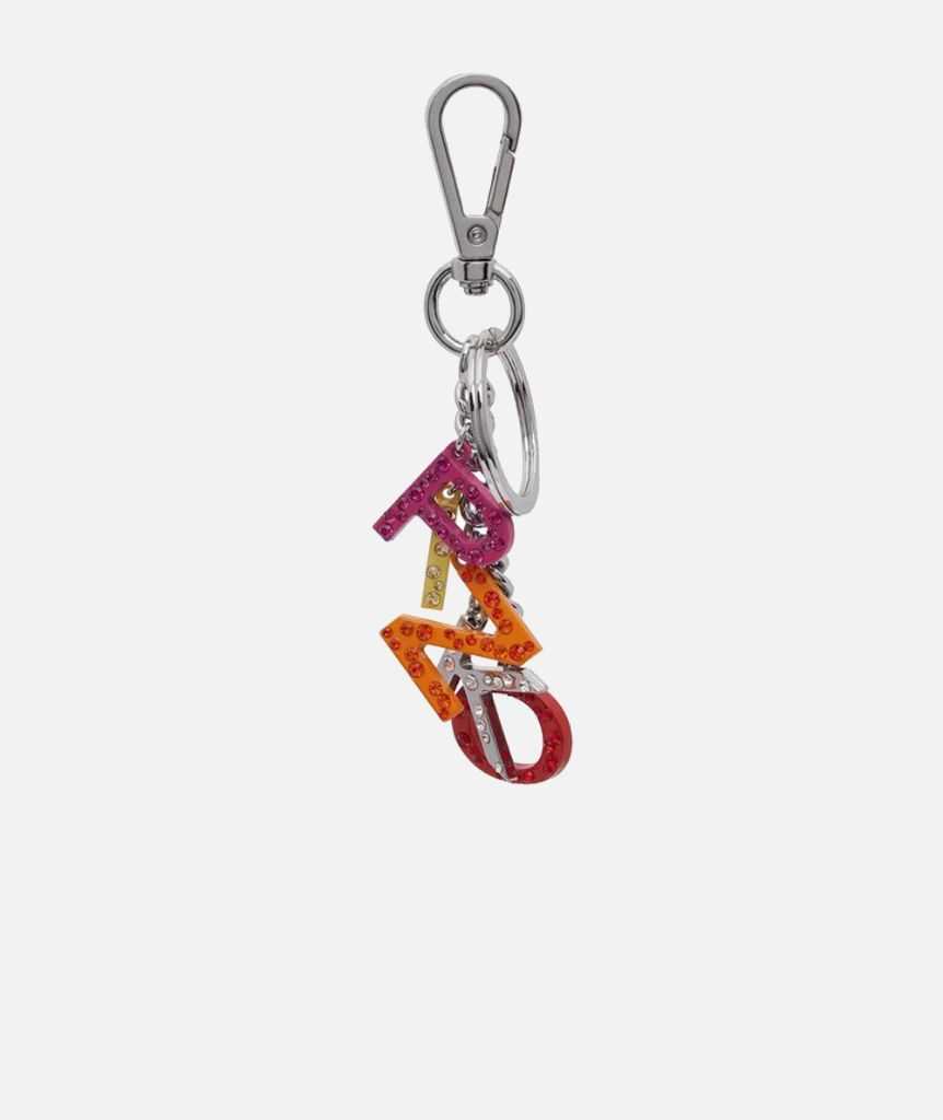 Portachiavi ad anello in metallo con rifinitura argento personalizzato con charm letters scritta pinko, temkpestata di strass. Il portachiavi è inoltre completo di un piccolo moschettone per utilizzare l'accessorio anche come charm per personalizzare la tua borsa preferita e renderla ancora più speciale.