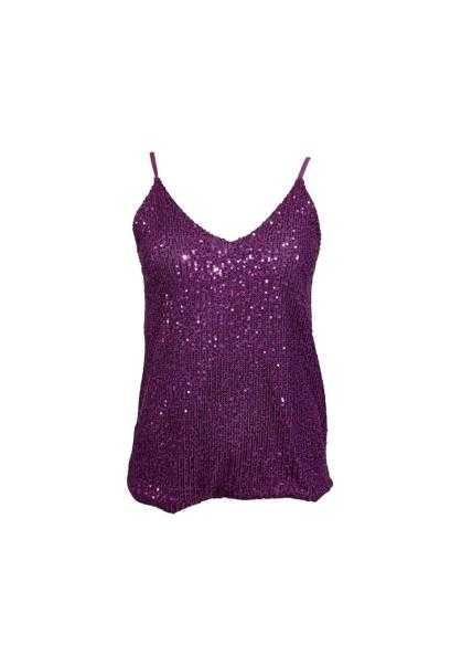SHOP ART - Susy Mix Donna Canotta Top Paillettes Viola 90243