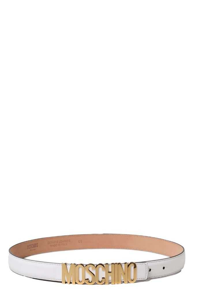 MOSCHINO Cintura in pelle di vitello liscia con logo lettering in oro Misure: Altezza cintura 3 cm