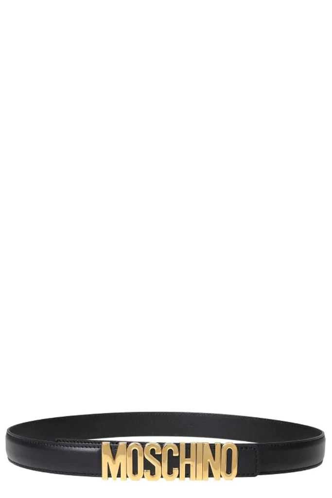 MOSCHINO Cintura in pelle di vitello liscia con logo lettering in oro Misure: Altezza cintura 3 cm
