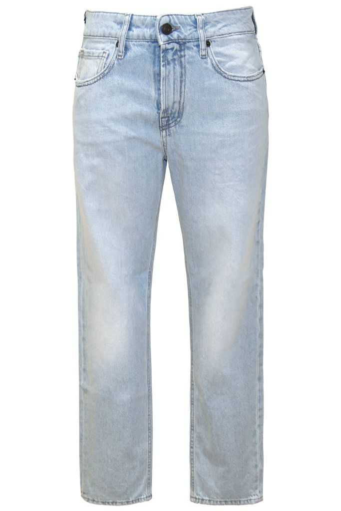 CYCLE Jeans modello Body rock lavaggio blu ghiaccio, cinque tasche con vita alta e gamba morbida con fondo leggermente a stringere. Chiusura frontale con zip e bottone con patta, passanti posteriori con motivo logo.