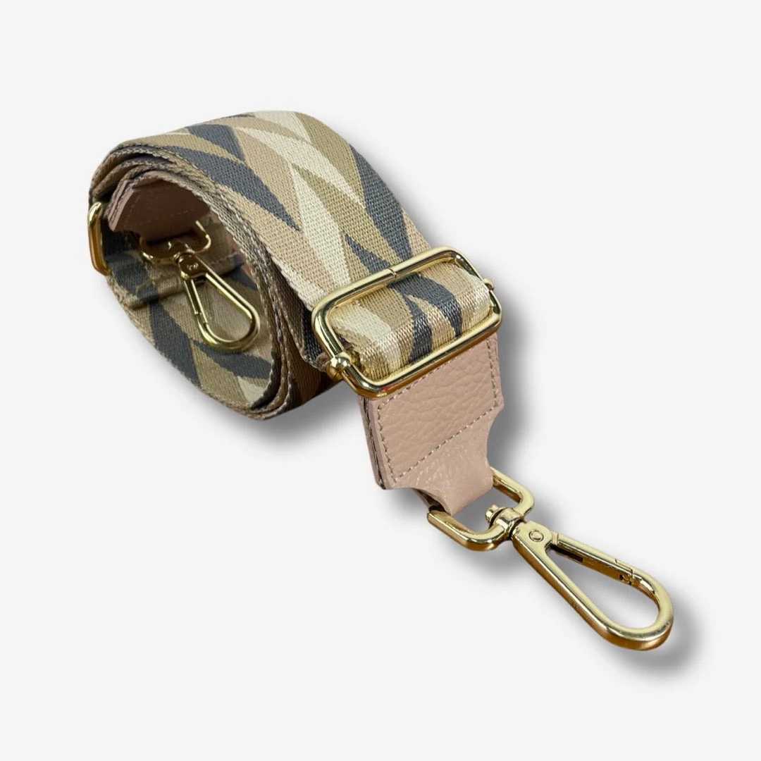 Descrizione - Tracolla regolabile in cotone e vera pelle MADE IN ITALY Hardware e parti metalliche - Accessori in acciaio inox color oro Dimensioni - Lunghezza minima: 80cm - Lunghezza massima: 126cm - Larghezza: 4cm Made in ItalyQuesto è un pezzo d'artigianato fabbricato in Italia. Leggi l'articolo del nostro blog per più informazioni.