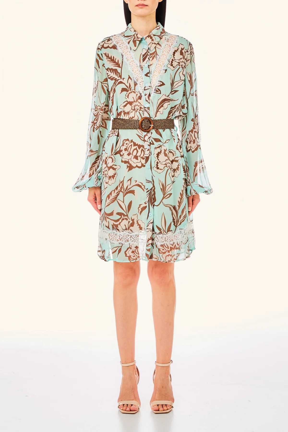 Liu.jo donna abito MA4257T3473 N9217 Abito chiemisier con cintura in viscosa con inserti in pizzo e colletto a camicia. Maniche sfoderate ampie al fondo con polsini. Chiusura a bottoni.