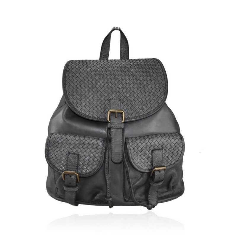 Zaino artigianale In vera pelle intrecciata: uno stile vintage di moda universale. Con praticità e un tocco di aprticolarità puoi arricchiere il tuo abbigliamento con questa borsa in vera pelle italiana, con elementi intrecciati di pregio. Made in Italy