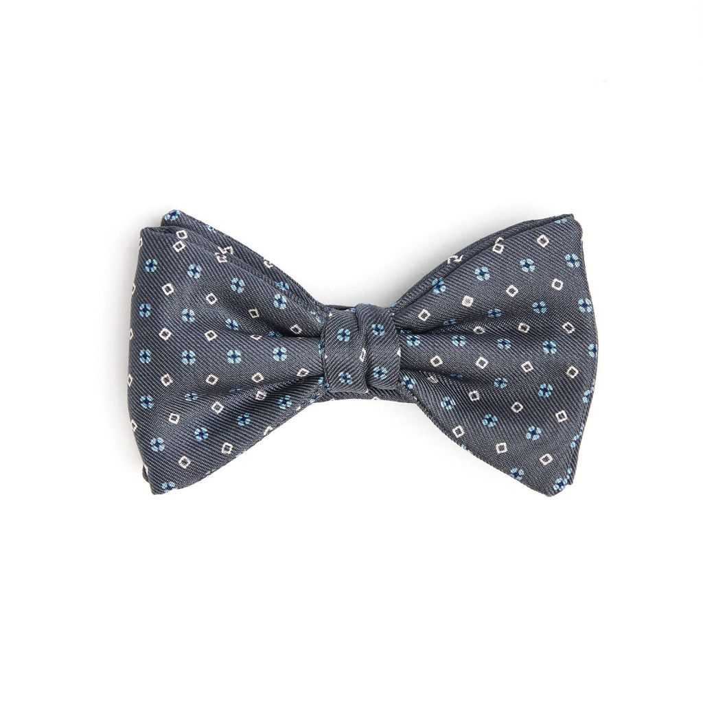 Papillon Annodato in Seta Grigio Scuro - Microfantasia Fiore