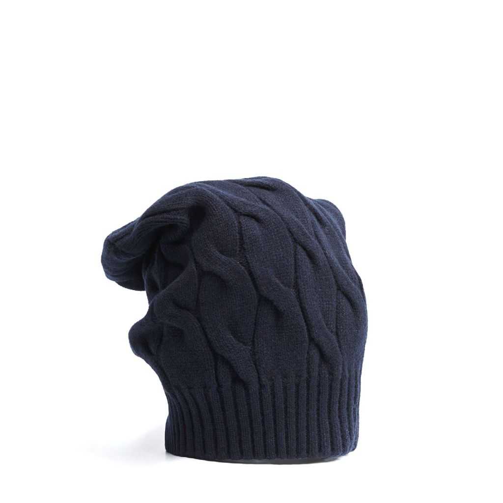 Cappello in lana con lavorazione a trecce e bordo a costine.