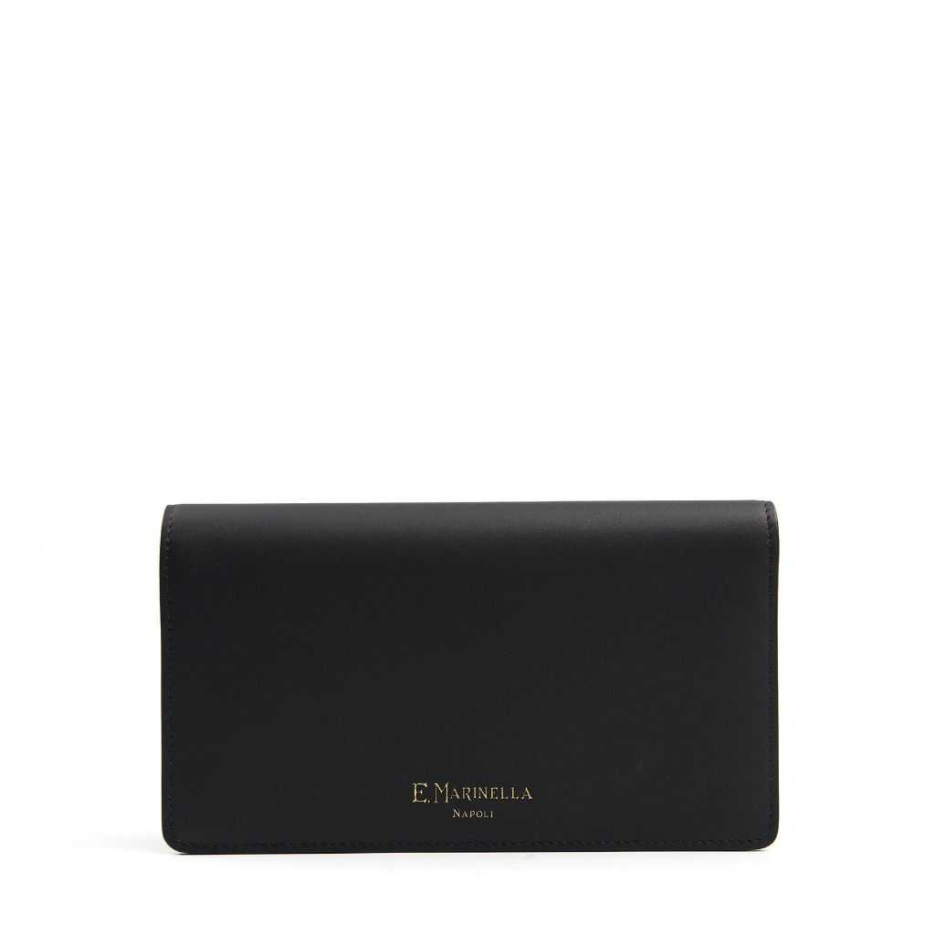 Il portafoglio E.Marinella è realizzato in morbida e preziosa pelle liscia con logo lettering stampato color oro. Caratterizzato da un design essenziale ed elegante con fodera in moirè. Internamente arricchito da nove scomparti, tre tasche e un porta monete con zip. Il bordo nero a contrasto è dipinto a mano dai nostri artigiani. Made in Italy