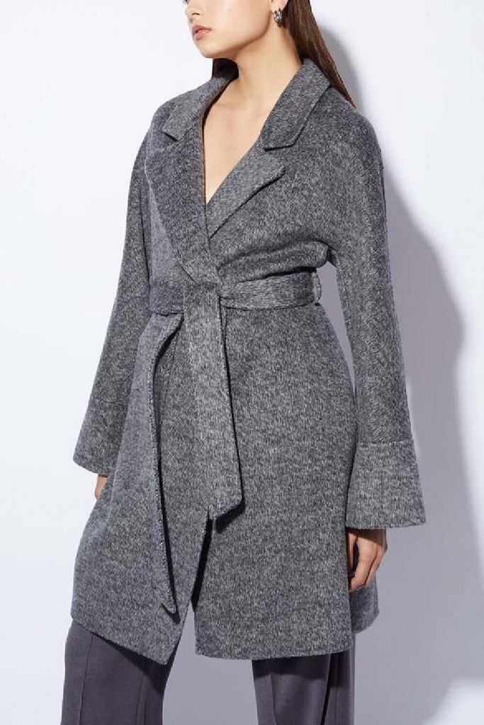 SIMONA CORSELLINI Cappotto in misto lana, alpaca e coniglio colore grigio melange con cintura regolabile e removibile