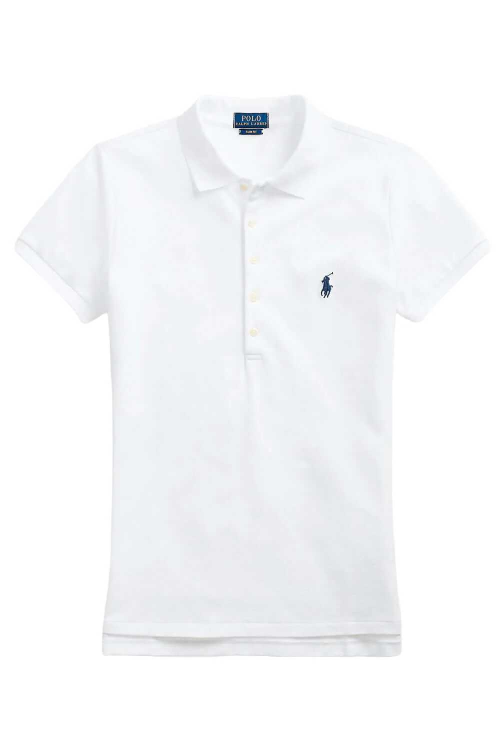 POLO RALPH LAUREN Polo stretch Slim-Fit colore bianco con iconico pony ricamato sul davanti in blu. Colletto polo a coste. Chiusura a cinque bottoni. Maniche corte con fondo manica a coste. Orlo posteriore più lungo. La taglia M ha una lunghezza di 62,2 cm sul davanti e 64,8 cm sul retro. La lunghezza del capo è misurata a partire dal punto più alto della spalla.
