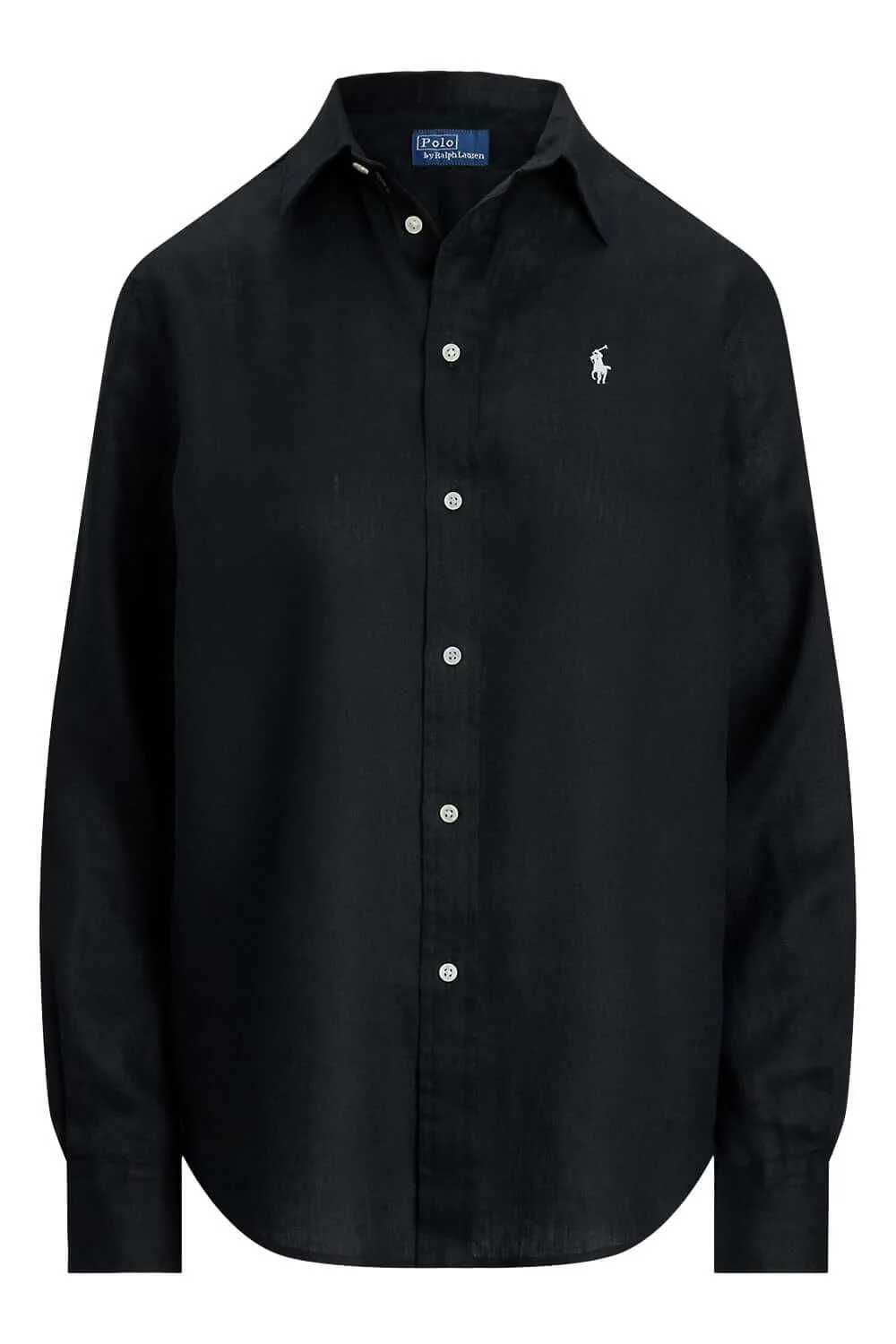 POLO RALPH LAUREN Camicia in lino Classic-Fit colore nero, collo a punta. Cannoncino con bottoni. Bottoni in madreperla. La taglia M ha una lunghezza di 71,8 cm sul davanti e maniche di 83,8 cm. Le lunghezze del corpo e della manica sono misurate a partire dal centro della nuca. La lunghezza della manica varia di 1,9 cm in base alla taglia.