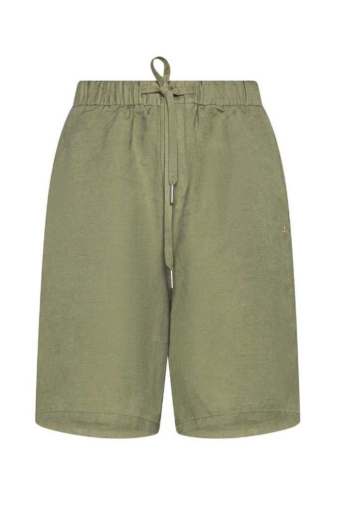 SUN68 Shorts in lino colore verde con coulisse in vita