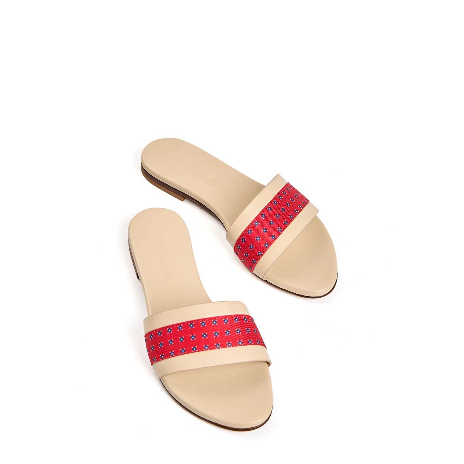 Sandalo Flat Iconographic Signature con Fascia Beige E Rosso in Pelle E Seta