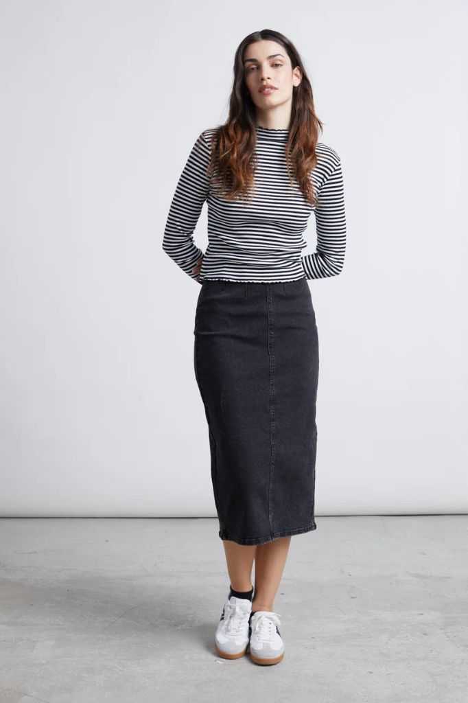 Vestita ideale per ogni occasione! Realizzata in denim nero, questa gonna a tubino è perfetta per un look casual ma di tendenza. Realizzata in materiali di alta qualità, garantisce comfort e vestibilità perfetta grazie alla sua composizione di cotone, poliestere ed elastan. Aggiungi un tocco di stile al tuo guardaroba con questa gonna a tubino 24 colori! Composizione: 66% cotone, 32% poliestere, 2% elastan