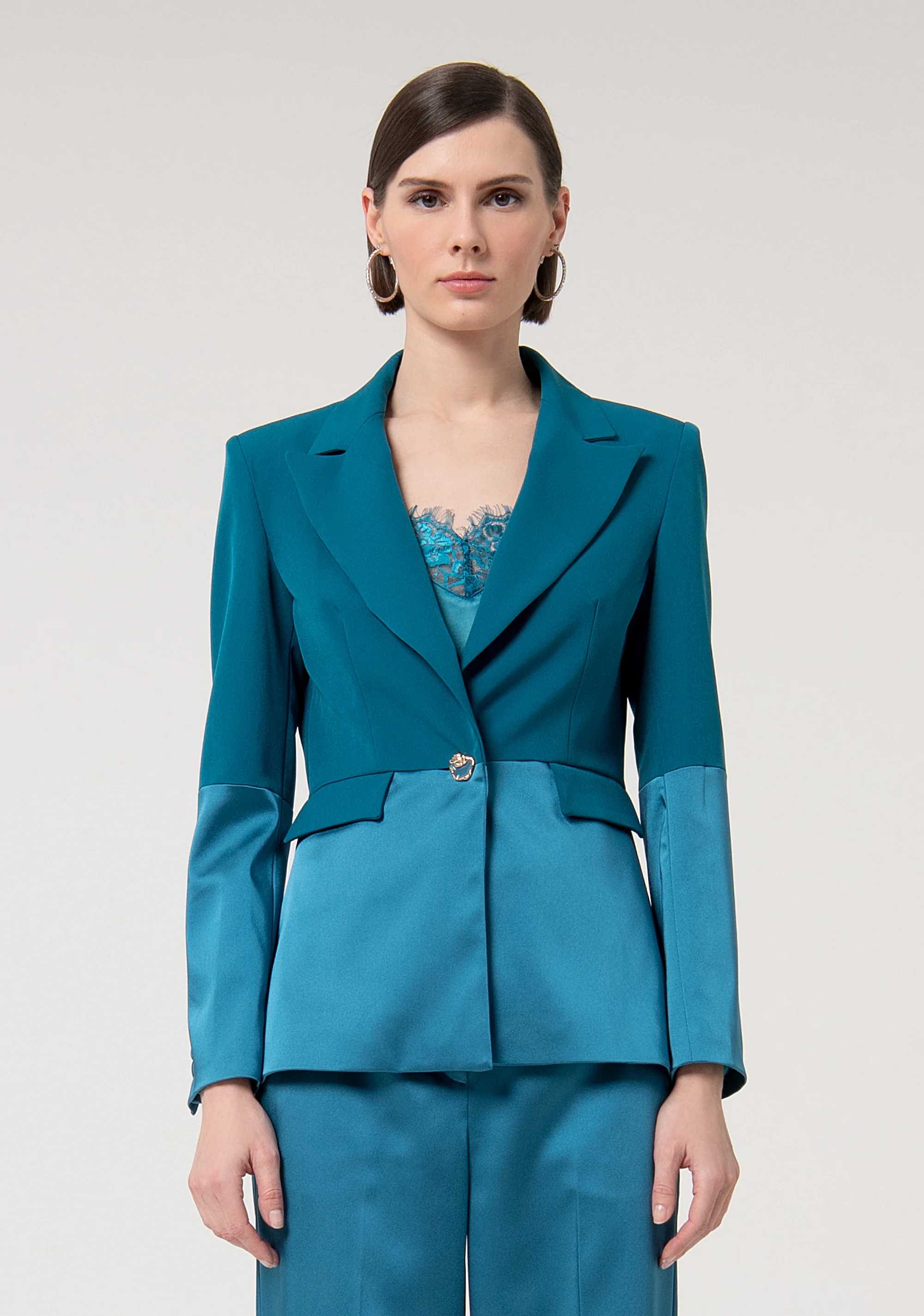 Blazer slim monopetto con inserto in raso