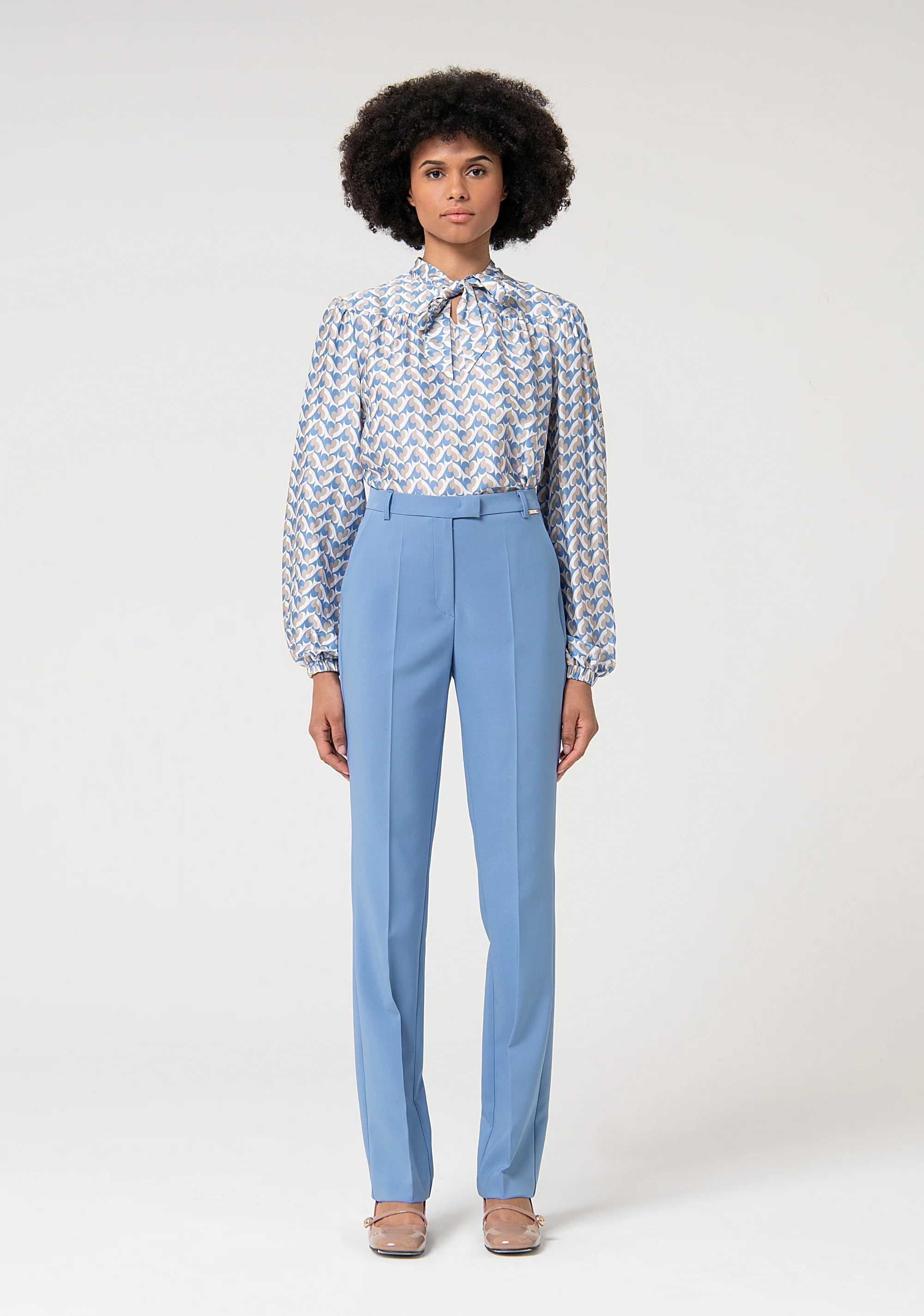 Pantalone regular in tessuto stretch, vita regolare, tasche alla francese sul davanti, e con fondo dritto.SHELL: POLYESTER 88% ELASTANE 12%La modella è alta 175 cm e indossa una taglia SMALL