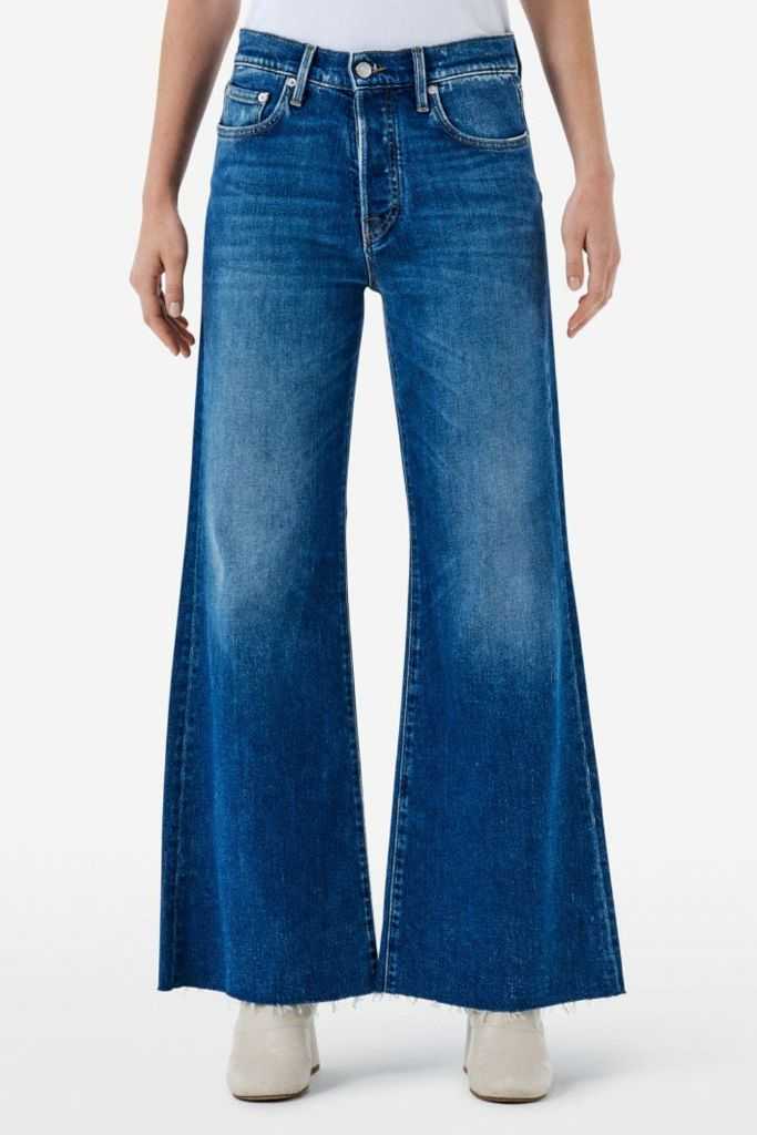 CYCLE Jeans flare fit con vita medio-alta. Il modello cinque tasche è contraddistinto da una gamba morbida e svasata con fondo tagliato a vivo dal gusto decisamente contemporaneo e da una tela piuttosto elastica che non costringe i movimenti. Questo capo, proposto nella tonalità navy blue, presenta una tela dalla trama irregolare sottoposta a un lavaggio vintage che crea un effetto invecchiato e marcati contrasti di colore. Conferiscono ulteriore personalità a questi jeans i passanti incrociati sul retro che richiamano il logo e il dettaglio placcato a forma di logo su una delle due tasche posteriori applicate.
