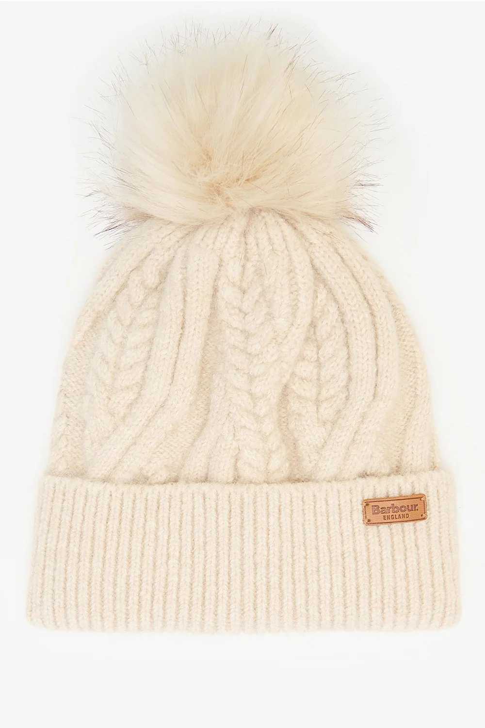 BARBOUR Berretto a trecce Elsdon con pompom colore beige Tessuto esterno principale: 98% poliestere, 2% cotone Finitura: 74% acrilico, 16% modacrilico, 10% poliestere A sinistra: badge con logo. Larghezza: 38 cm. Lunghezza: 180 cm Lavare a mano a 30 °C.